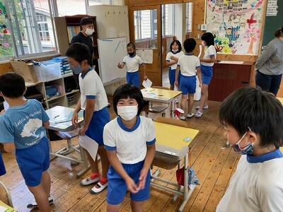 子どもたちは、台風の被害や臨時休業中の生活などについていろいろな話を聞かせてくれました。復旧作業にあたったおうちの方や地域の方の様子もよく見ていたようです。人生のお手本として学ぶことも多かったと思います。