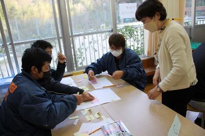 今回は、尾向青年会から4名をお迎えしました。4つのブースを作り、子どもたちが班ごとに話を聞く時間を設定しました。子どもたちは、青年会の活動内容や入ったきっかけ、仕事についてなどを積極的に質問していました。ふだんから知っているお兄ちゃんお姉ちゃんなので、親しみをもって熱心に話を聞いていました。