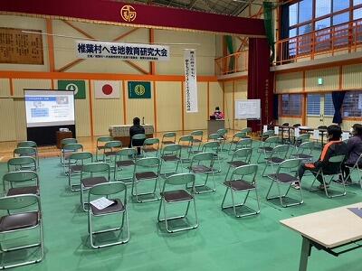 尾向小の5・6年生は焼畑体験学習や神楽について発表しました。また、他の学校の発表に積極的に質問したり感想を話したりすることができました(途中、3・4年生が見学をしました)。