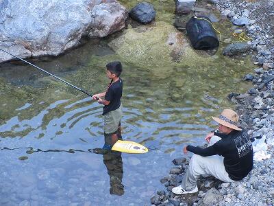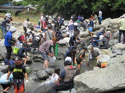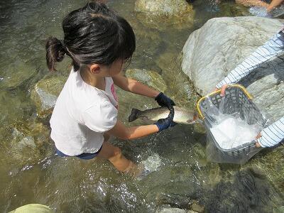 尾向渓谷祭り・釣り大会が開かれました。釣り大会には、早朝から釣り愛好家が集まり、エノハやマス釣りを楽しみました。子どもたちも楽しく参加していました。午後からは、子どもつかみ取り大会が開かれ、未就学児から中学生まで、たくさんの子どもたちが、つかみ取りを楽しみました。