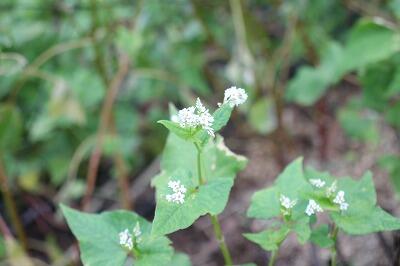 そばの種まきをしてから、40日たちました。台風の影響が心配でしたが、白い花を咲かせていました。順調に成長しているようです。