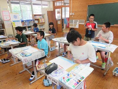森のアーティストの方々にご指導いただきながら読書感想画に取り組みました。各教室にお一人ずつ入ってもらい、イメージの膨らませ方や様々な技法を教えていただきました。子どもたちは、発想を広げながら楽しく取り組んでいました。
