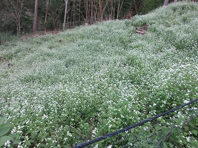 子どもたちは、2ヶ月ぶりに日添小林の焼き畑地に行きました。7月23日にソバの種まきを行いましたが、その後どのように成長しているか楽しみにしていました。一面に広がる小さな白い花を見て、子どもたちから歓声があがりました。