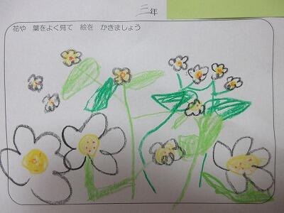ソバの花を近くで見たり、触ったりして様子をスケッチをしました。また、気づいたことをまとめました。