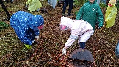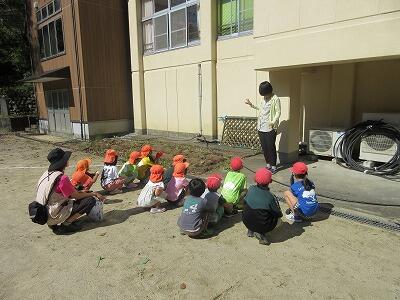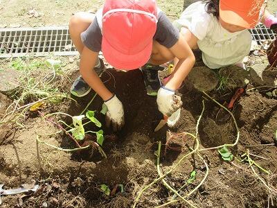 1・2年生は尾向保育所の園児と一緒に、5月に植えたさつまいもの収穫を行いました。1・2年生は、園児を手伝いながら活動を進めていました。大きなさつまいもを掘りあてると、子どもたちから大きな歓声があがっていました。