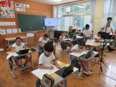 尾向小、椎葉小、不土野小の3・4年生は、オンラインでつないで学習する道徳の椎葉村ユニット学習を行っています。今日は、北部9市町村教育委員研修会が開かれていたので、椎葉村ユニット学習の様子を参観していただきました。3校の子どもたちが、たくさんの意見を交流する中で、自分のこれまでを振り返ったり、これからの自分について考えたりすることができました。