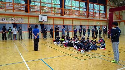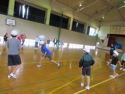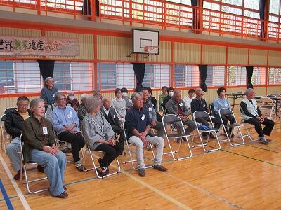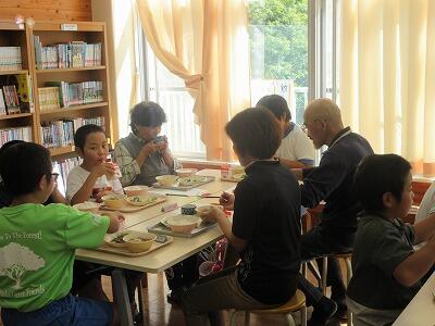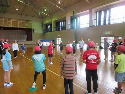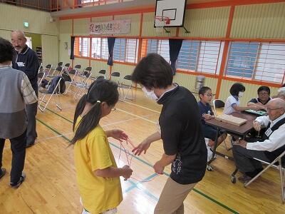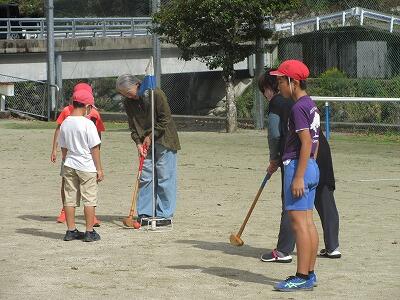 地域の高齢者、子どもの祖父母、計26名の方々に参加いただき、子どもたちとの交流会を行いました。昔の遊びや昔のお話、グランドゴルフなどで交流をしました。また、一緒に給食を食べていただき、楽しい時間を過ごしました。