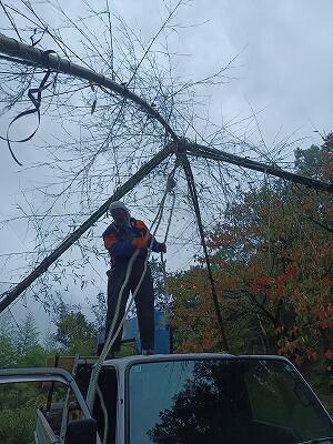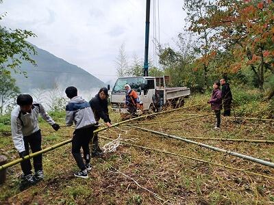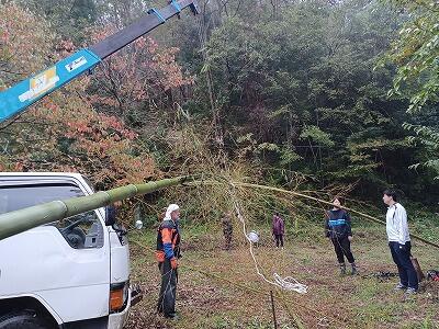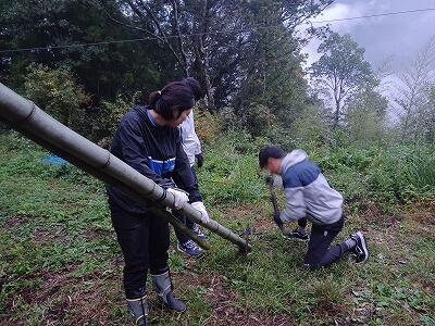 10月30日の森の遊園地体験に向けた準備を職員で行いました。今回は、竹を組んでブランコ作りを行いました。しなりの調整が難しく、何回もやり直しながら完成させました。30日の森の遊園地体験では、様々な遊具体験を行います。