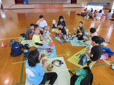 今日は不土野小学校と一緒に遠足に行きました。馬見原体育館でレクレーションや食事をした後、通潤橋の放水見学を行いました。通潤橋の放水では、その迫力に感激するとともに、先人の知恵と苦労について学ぶことができました。また、遠足を通して不土野小の子どもたちとの親睦も深まりました。