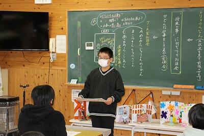 5・6年生は、将来の夢(6年)と改善したいところ(5年)を作文にまとめて発表しました。後半は、保護者の皆様と仕事(職業)についての意見交換を行いました。保護者の皆様が、どんな思いでそれぞれのお仕事をされているかを詳しく聞くことができました。