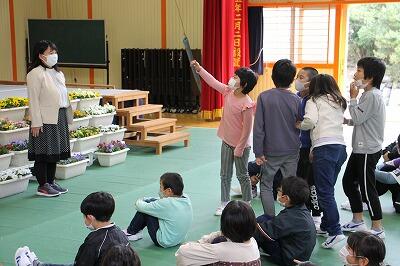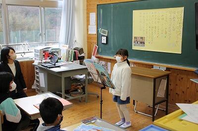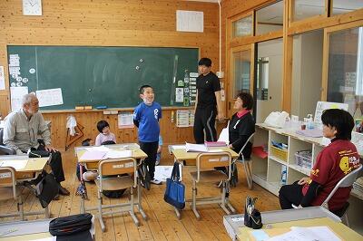 後半では、「大きなかぶ」というお話を方言に変換してもらい練習をしました。他の小学校との集合学習で発表するとのことです。方言は地域の大切な文化です。少しでもこどもたちが引き継いでいけるといいなあと思います。