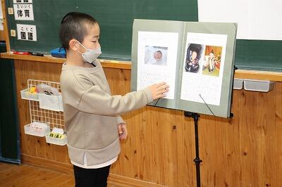 生まれたときの様子や今までにできるようになったこと、これからの目標などを堂々と発表することができました。自分の成長について調べることで、育ててくれている家族への感謝の気持ちをもつことができたようです。