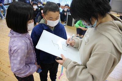 3・4年生は、体を使ったクイズをしました。誰が重い荷物を背負っているか?洗濯ばさみで指をはさんでいるのは誰か?などユニークなクイズで盛り上がりました。