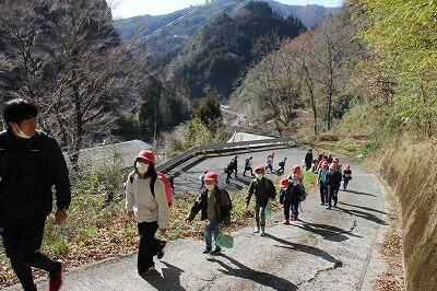 素晴らしい晴天に恵まれ、6年生と在校生との思い出になる素晴らしい遠足となりました。行き先は、旧尾向小学校跡地です。梅ちぎりや森の遊園地遊具作りで行っている場所なので、子どもたちは慣れています。学校から徒歩で約30分です。今回も尾前一日出さんにお世話になりました。