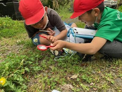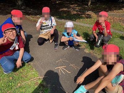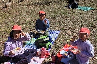 昼食を食べた後は、宝探しをしました。お別れ遠足の宝探しはかなり昔からの伝統のようです。子どもたちは必死になって隠された色画用紙を探していました。何とか全員が宝を見付けることができました。