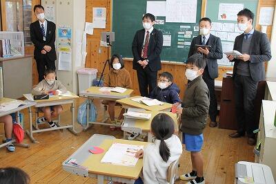 新しい学級での学習を参観していただき、学級の様子を知っていただくことができたと思います。1・2年生は音楽、3・4年生は算数(複式指導)、5・6年生は家庭科の学習でした。保護者参加の場面もあり、とても楽しそうな学習風景でした。