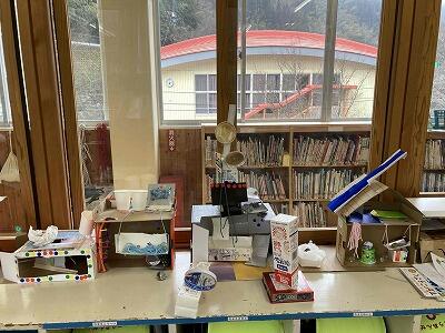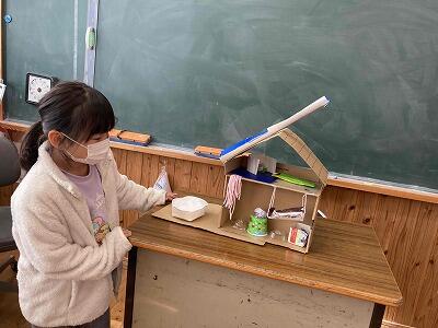 空き箱や紙コップ、色紙、ラップの芯などを使って思い思いに家を作りました。とても楽しそうに作業し、自慢の「ともだちハウス」が完成しました。
