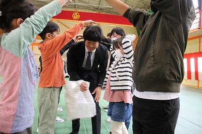 体育主任の先生から「えいえんおにごっこ」を紹介してもらい、低・中・高学年に分かれて体を動かしました。