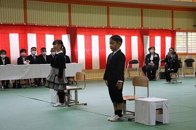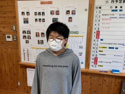 はじめに、1年生2人が自己紹介をしました。自分のことをきちんと話すことができました。