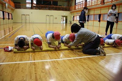 上体起こしやプランク、ダッシュなどをしました。全校児童で取り組むので、お互い励まし合いながら楽しく運動しています。