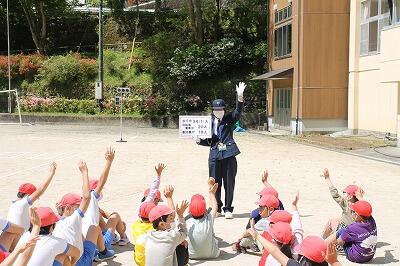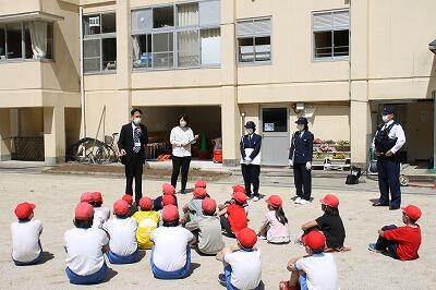 暑さを感じるほどの青空のもと、交通安全教室を行いました(4/28)。