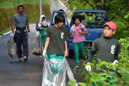 ・ 8日(日曜日)は、椎葉村民一斉清掃の日でした。本校では、緑の少年団活動の一つとして、地域の清掃活動を行いました。児童と職員、参加して下さった保護者を4つのグループに分けて、それぞれ学校までの通学路の清掃活動を行いました。ぱっと見た感じでは、あまりゴミはなさそうだったのですが、終わってみると結構な量になりました。まずは、ゴミを出さないようにする。次にごみを道などへは捨てないようにする。捨ててあったゴミをみつけたら拾うにする。などなど、一人一人が気をつけていけば、ごみはなくなると思います。