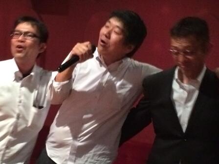 ・ 17日には、村のPTA連絡協議会総会が開催されました。終了後に、懇親会が鶴富屋敷で行われ、その後、私たち尾向小PTAを中心に二次会に繰り出しました。昨年度は連絡協議会長であった、元本校PTA会長(現椎葉中会長)は大きな肩の荷がおりたことでしょう。写真は、二次会での熱唱の一こま(元本校会長、現本校会長、現本校副会長)