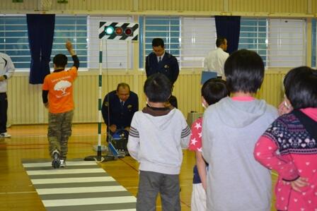 ・ 20日は、本校の交通教室を開催しました。講師として、警察署の方、交通指導員の方合わせて5名が来て下さいました。雨のため、体育館での指導でしたが、DVDで交通事故の恐ろしさを感じたり、道路横断体験で具体的に指導していただいたりするなど、子ども達の安全意識の高揚を図ることができました。来校して下さった方々、どうもありがとうございました。