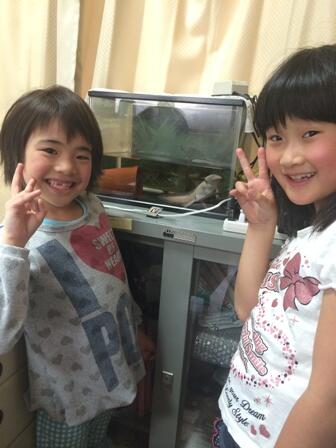 ・ ウーパールーパーを飼っています。2年半前は5cm位しかありませんでしたが、今は、25cmくらいあります。時々、写真のように子ども達が見に来ます。