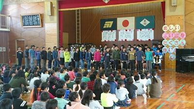 ※1日目、早速、遠見山展望台に登り、門川町内を眺め、草川小学校着いたら、それぞれの教室に移動し、給食を食べて、体育館で歓迎集会がありました。