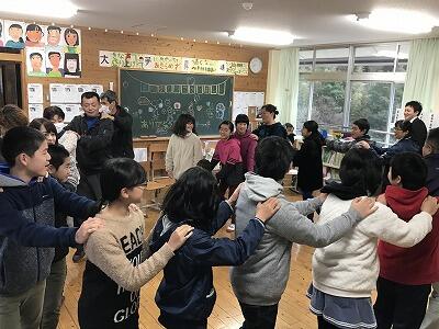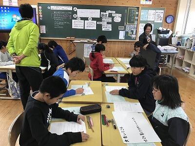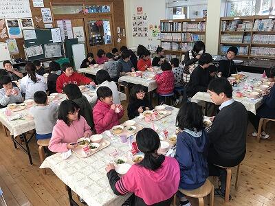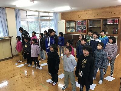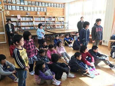 今日の日中は、4月の春の陽気の暖かさでした。その暖かさのおかげで、最初の内は緊張気味だった不土野小の子どもたちも学習・給食・昼休み時間と、一緒に活動する中で徐々に打ち解けてきて、1日目が終わる頃にはすっかり仲良くなっていました。お隣の学校ですが、普段はなかなか会う機会もないことから、この2校間集合学習を通して、交流を深めることができたらいいです。