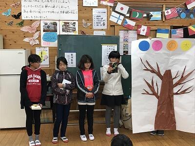マルチパーパスで、誕生日の歌を全員で歌ったあと、美味しい給食を食べて、保護者からのメッセージやお友だちからのお祝いの言葉、そして、本人からのあいさつと続き、最後は恒例のクイズで終わりました。