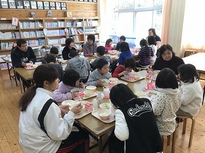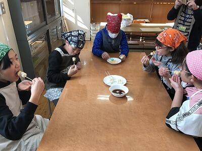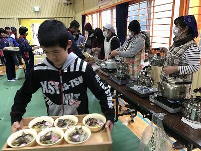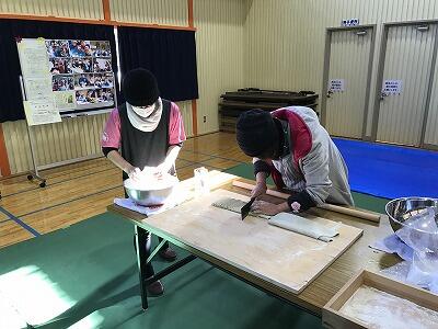 そば打ち体験では、講師や保護者の方々に手順を教えていただきながら活動をし、そばを打った後、全員で試食を行いました。自分たちで栽培したそばの味は格別のようでした。子どもたちは、これまでの活動を思い出しながら、おいしくそばをいただいていました。