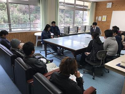 【開会式の様子。椎葉中学校2年生も手伝ってくださいます。 早速焼畑地へ移動し、収穫の手順について説明を聞きます。】↓