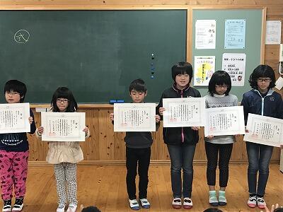 閉級式では、今年度で、小学校のPTA活動が終了する保護者の方々に、椎葉村立からの家庭教育学級修了書をお渡しいたしました。
