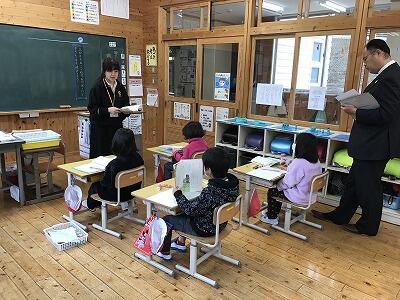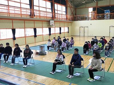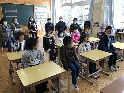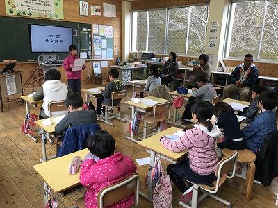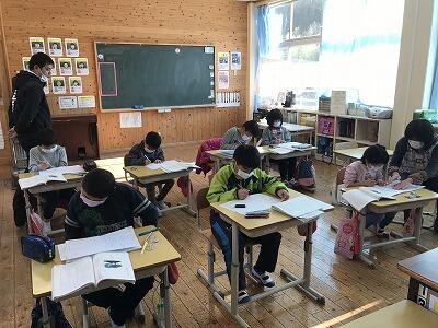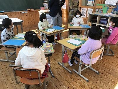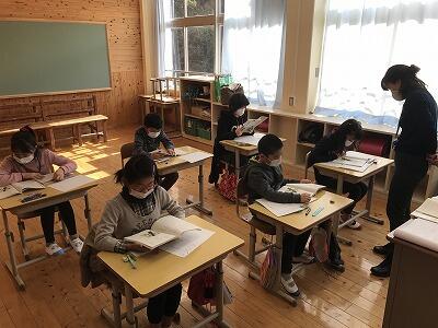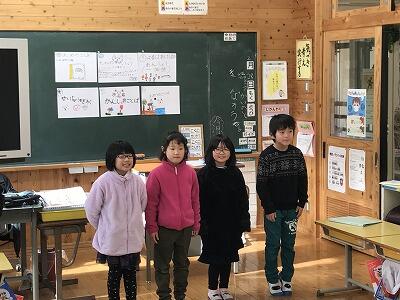 今日の、1年生は①国語、②算数、③④生活、⑤体育を、2年生は①国語、②③生活、④算数、⑤音楽を、村内の同学年のお友だちと学習しています。集合学習は、明日まで行われます。日中はポカポカ陽気で、楽しい時間を過ごしていることでしょうね。