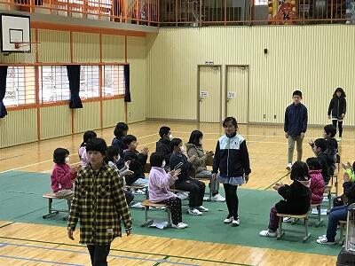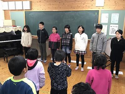 1校時には、1.2年生は6年生に贈る言葉の練習をしていました。