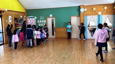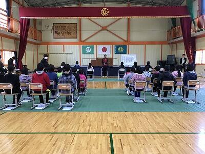 今日は、低学年(1.2年生)の集合学習が、椎葉小学校で行われています。