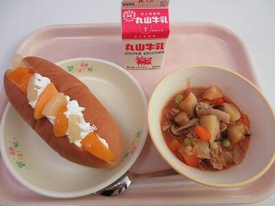 子どもたちは朝からそわそわして、給食の話をしていました。ほとんどの子が「一番好きな給食のメニュー」と言うほどの人気です。(自分たちでフルーツやクリームをはさむのではなく、写真のように完成した状態で提供されます。給食調理員の皆さんの苦労がしのばれます。ありがとうございます。)
