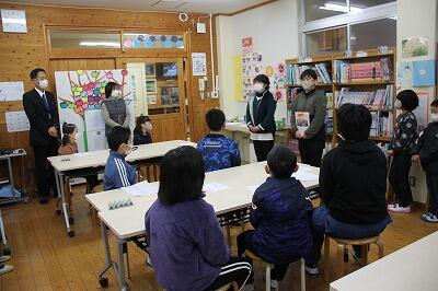 椎葉村学で学習した「尾向の方言を使った大きなカブ」、算数や社会などで学習した内容のクイズ、長縄の披露をしました。5人で一生懸命がんばる姿に胸を打たれました。