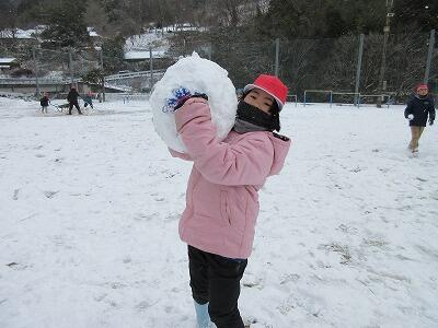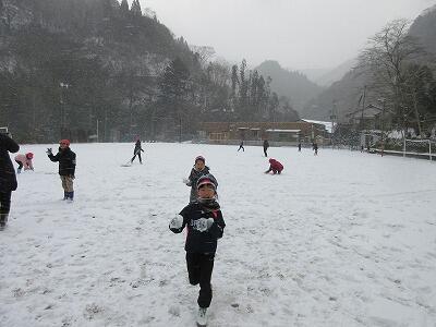 子どもたちは全員が元気に登校し、降り積もった雪に大喜びでした。登校してすぐに(玄関前で)雪合戦が始まりました。また、朝の時間を使って全校児童で遊びました(運動場も一面の雪景色)。雪合戦をしたり雪山を作ったりと、思い思いに雪を楽しみました。暑くなって上着を脱ぐ子もいたほどでした。年に数回は雪の降る尾向地区ですが、子どもたちにとっては楽しみばかりの雪のようです。
