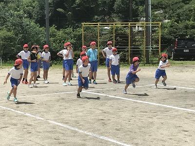 また、週1回は、「高鬼」という追いかけっこ?みたいな遊びで、1年生から6年生までの全校児童で元気いっぱい、笑顔いっぱい、6年生がリーダーシップを発揮して仲良く遊んでいます。