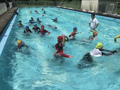 【1年生の二人も、小学校のプールに初めて入りました】↑