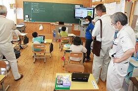 29日に椎葉村議会議員10名、議会事務局2名、教育委員会2名が来校され、本年度整備していただいたタブレットを子どもたちがどのように活用しているかをご覧になりました。教師の授業での活用状況や子どもたちの学習の様子を見て大変感心されていました。今後も引き続きタブレットの積極的な活用に取り組んでいきます。