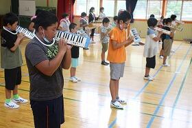 本校の特色ある活動の一つである「鼓笛」の練習がありました。今年は練習が昨年とは違い、タブレットとヘッドセットで模範演奏を聴きながら練習をしています。速度を自分の力に合わせて変えられるので子ども一人一人に合わせた練習ができます。これから運動会での発表に向けて26人の子どもたちが力を合わせてがんばります。