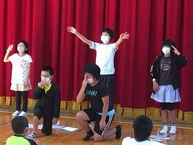 13日(月)は鑑賞教室でした。午後椎葉小に移動して、劇団「風の子九州」さんの「このゆびとまれ」を観劇しました。さすがプロ、劇団員の演技力や表現力は素晴らしく、テーマの「友情」がよく伝わってきました。最後は子どもたちも一緒にダンスをして終わりました。90分ほどの時間でしたが楽しい時間を過ごせました。