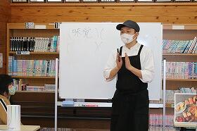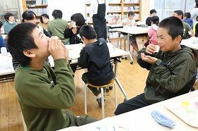 椎葉屋の椎葉昌史さんを招いて、「味覚の授業」を実施しました。食べ物には5つの味(塩味・酸味・苦味・甘味・うま味)があることを学習した後、実際にその5つの味を体験しました。5感(視覚・嗅覚・聴覚・触覚・味覚)を使って食べ物を味わうことの大切さを学びました。