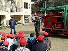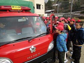 4年生の社会科の「くらしを守る」の学習で地域の消防団の活動について調べました。学校の近くにある第11部の消防倉庫に行き、2名の消防団の方からいろいろな説明を聞き、質問に答えてもらいました。ポンプ車に乗せてもらったり、ポンプのエンジンをかける体験をさせてもらったりと、大変有意義な学習となりました。お仕事のお忙しい中協力して頂いた地域の消防団の方々本当にありがとうございました。