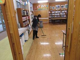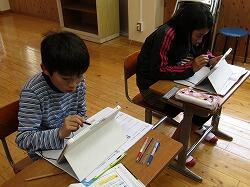 尾向小には月に1回「ワックスの日」があります。授業終了後机等を全部廊下に出して、職員が室内にワックスを掛けます。ワックスが乾くまで子ども達は廊下で宿題等の課題に取り組むのが決まりです。