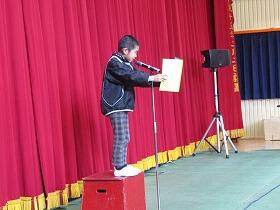 その後人権作品や陸上大会の表彰を行い、春休みに向けてのお話を聞きました。新学期は4月7日が始業式となります。